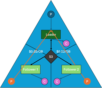 Yes, you read that right. A producer can send data to the broker closest to it (in the same AZ), and that broker can handle the write to object storage. This means we can effectively eliminate cross-AZ producer traffic as well.