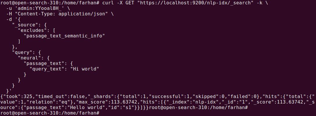 GET /nlp-idx/_search { "_source": { "excludes": [ "passage_text_semantic_info" ] }, "query": { "neural": { "passage_text": { "query_text": "Hi world" } } } } |