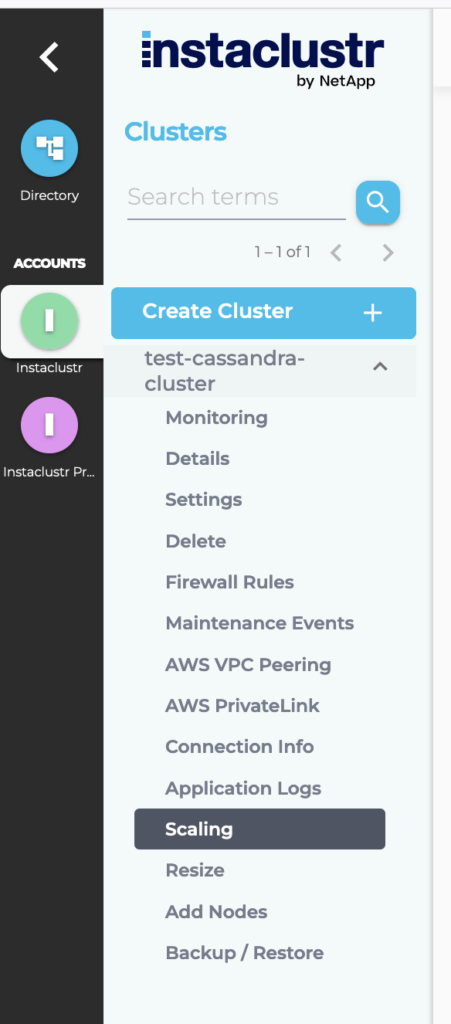 - Select your running Cassandra cluster from the sidebar menu and Click Scaling.