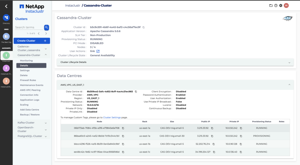 Instaclustr recommends that you first test your applications against a data centre in a non-production setting to verify that the resize process doesn’t interrupt your applications.