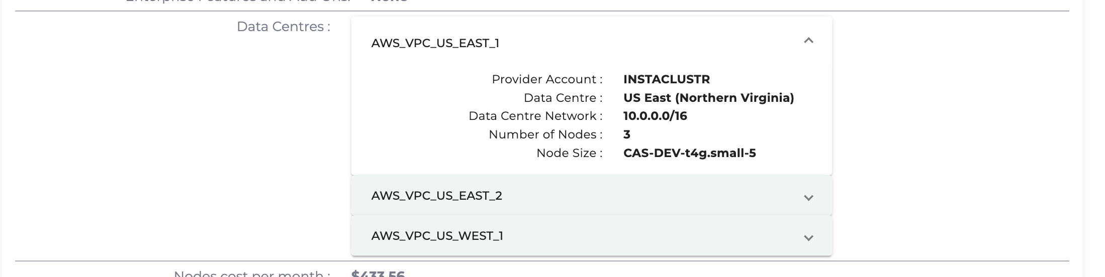Be aware that cross-region and cross-provider replication will count towards your network usage under Instaclustr’s fair use policy and may incur additional charges when running in Instaclustr’s cloud provider account. If you are planning on using multiple DCs in this configuration then please contact Instaclustr Support to assist with capacity planning.