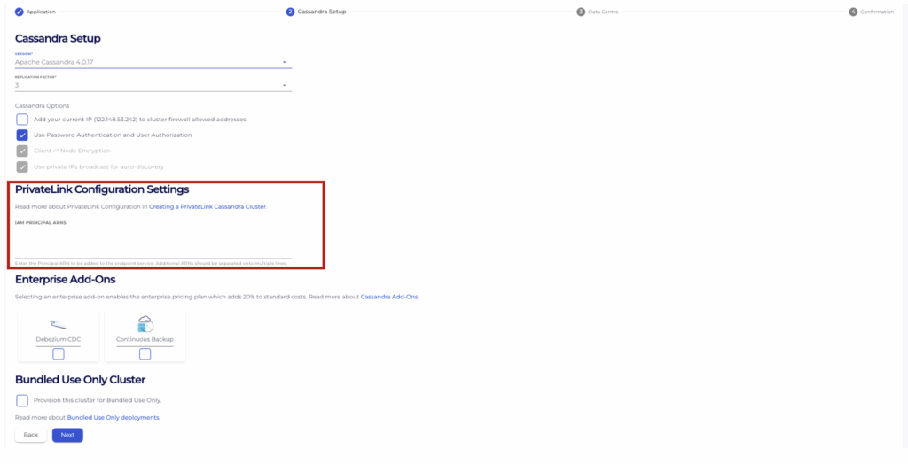 1 – Login to the Instaclustr Console and provision a new Cassandra cluster and ensure you select the AWS PrivateLink Enterprise Feature.