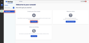 - Log into the Console and click the Create Cluster button.