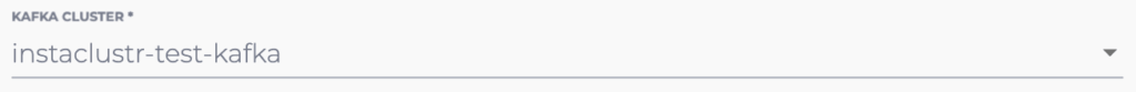 - The first dropdown box will display all Kafka clusters created and running in your Instaclustr account. Select the cluster you wish to integrate with.