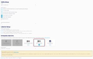 To create a new Kafka cluster with the Kafka REST Proxy add-on, make sure to enable Kafka REST Proxy under the Enterprise Add-Ons subsection on the Kafka setup page.