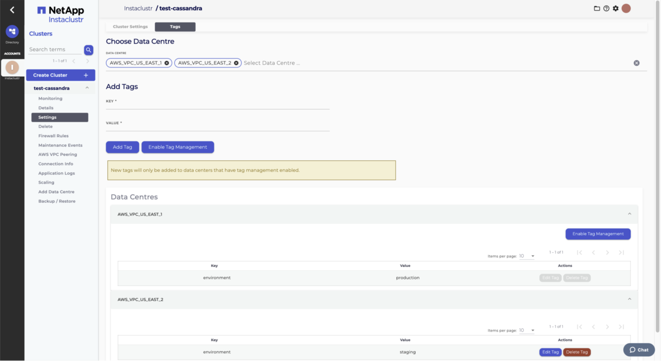 tag_management_enabled = true in the data centre configuration (e.g., Terraform configuration for Cassandra). - Run