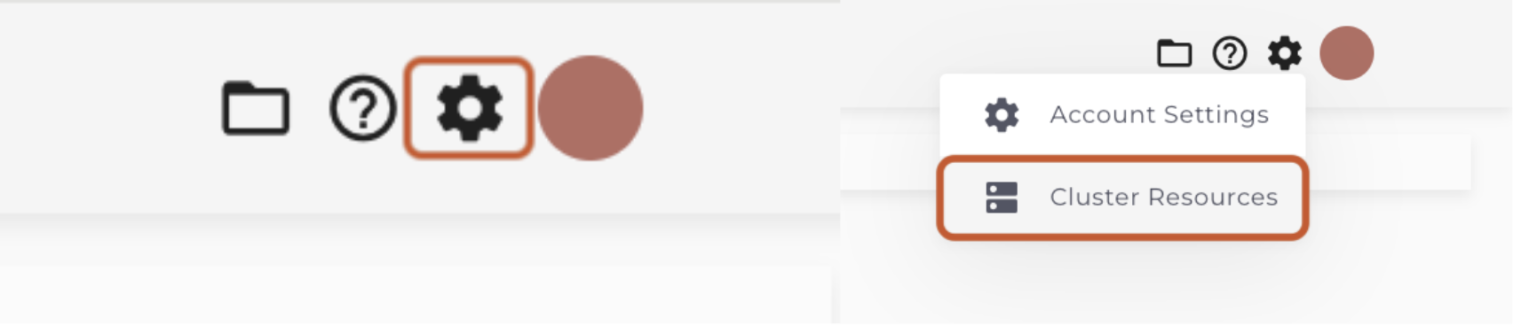 - To get started, click the gear icon at the top right-hand corner of Instaclustr Console. This will show a dropdown menu from which you should select the Cluster Resources option.