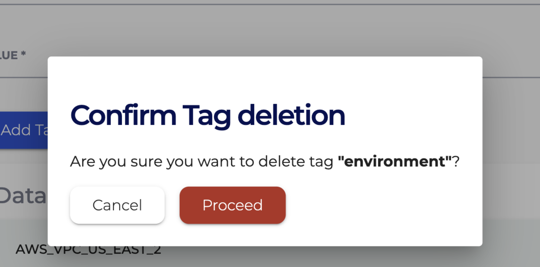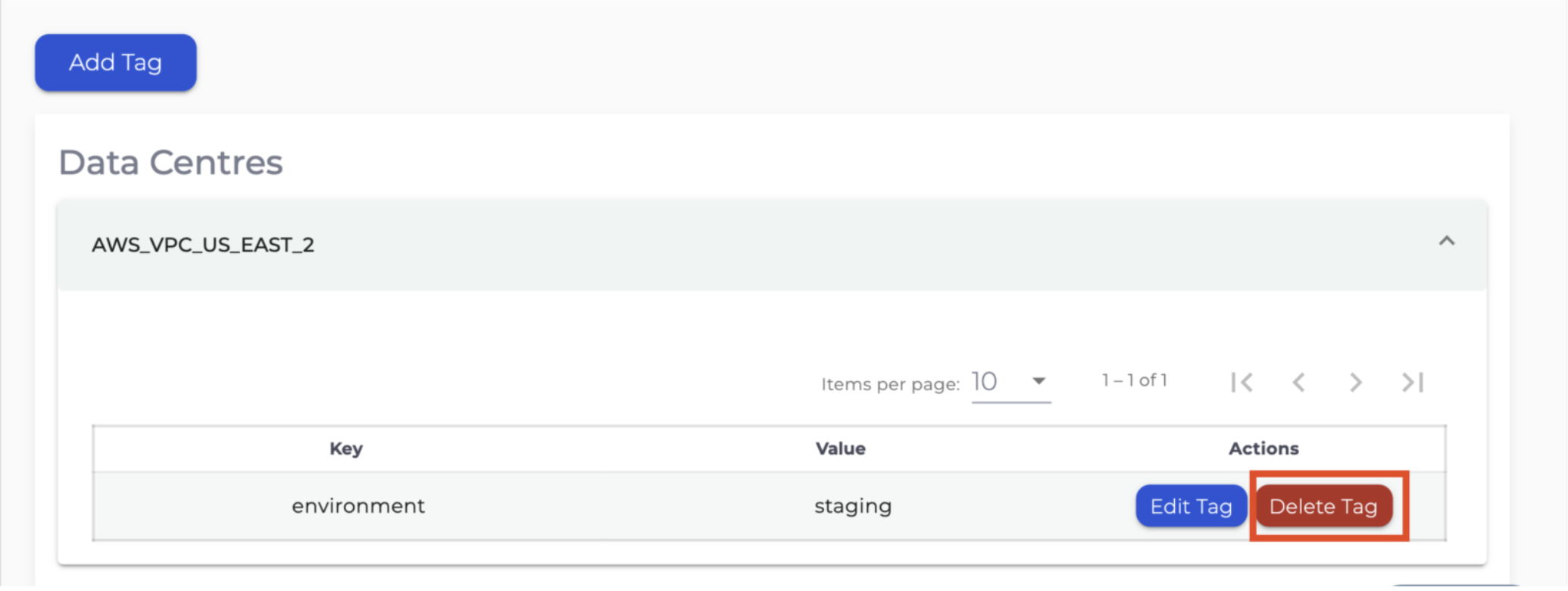- Exclude an existing tag from the data centre configuration to delete the tag.